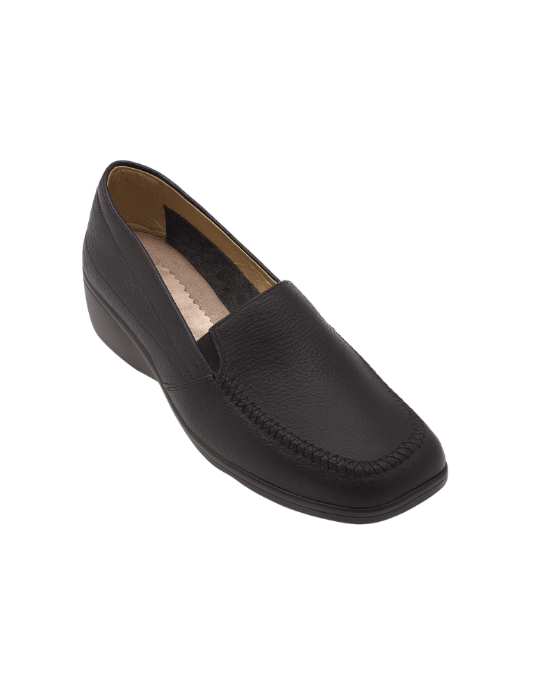 Capellada y talón en cuero, Suela en espanso. Tacón altura 4cm. Forrado de badana.